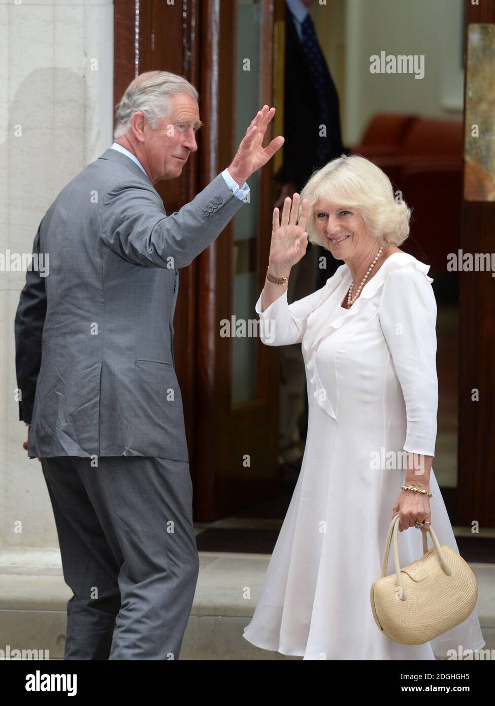 Prince Charles And The Duchess Of Cornwall Arrive At The Lindo Wing Of St Mary S Hospital London To Visit The Duchess Of Cambridge Prince William And Their Newborn Son Stock Photo